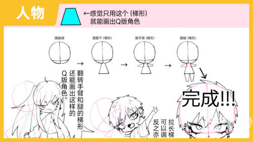 如何用圆和梯形画Q版角色
